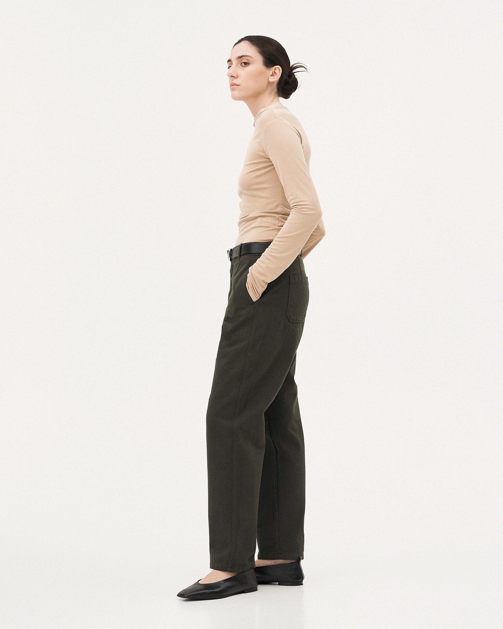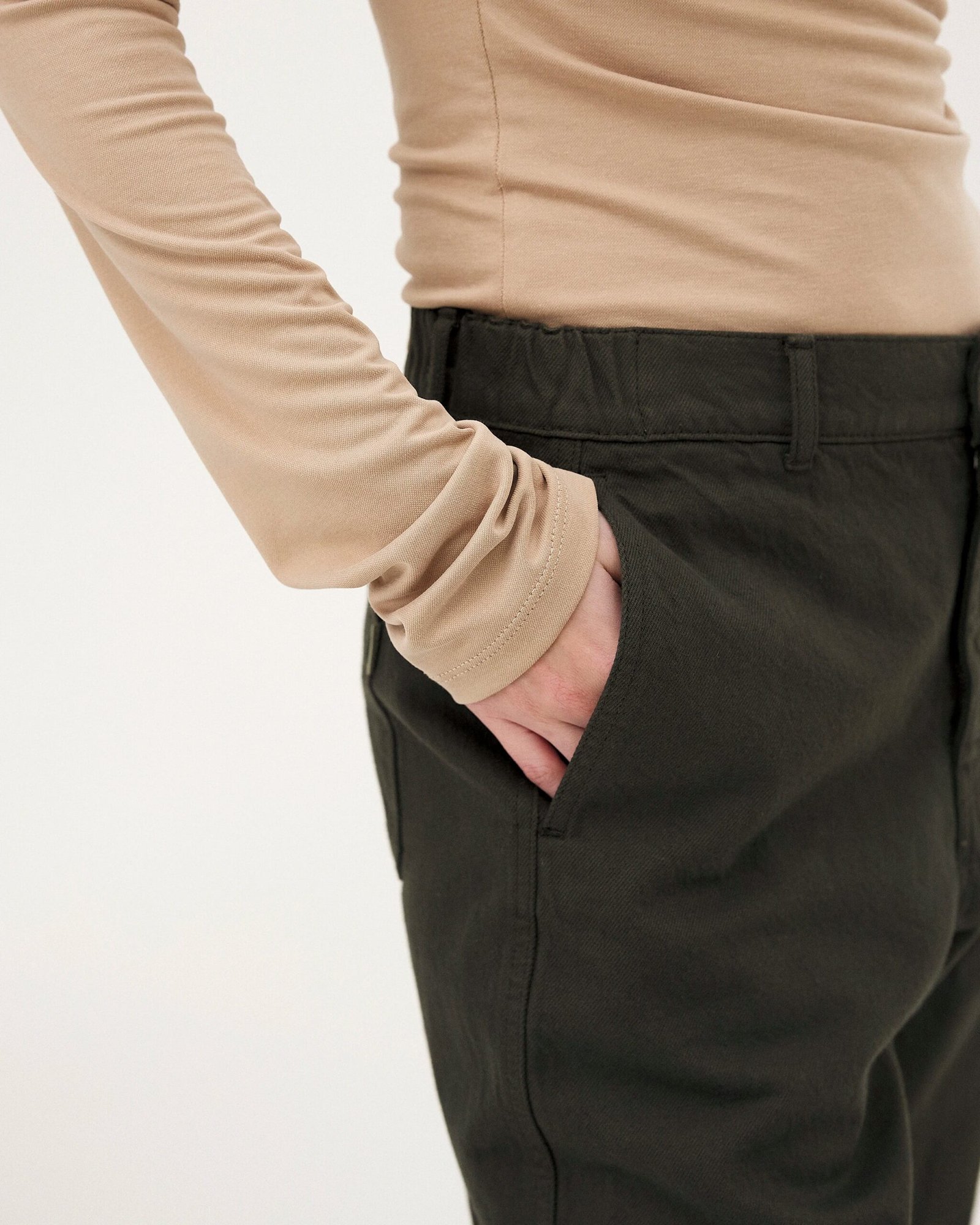 Progettati per durare nel tempo, questi jeans unisex sono diventati una parte iconica del nostro guardaroba. Sono realizzati in un tessuto tessuto con fibre di cotone biologico in Italia. La trama diagonale twill conferisce loro resistenza e flessibilità. Hanno una vestibilità ampia, con gambe dritte e leggermente affusolate sul fondo. Il cavallo lungo e l’elastico in vita consentono di indossare i pantaloni a vita alta o a vita normale.