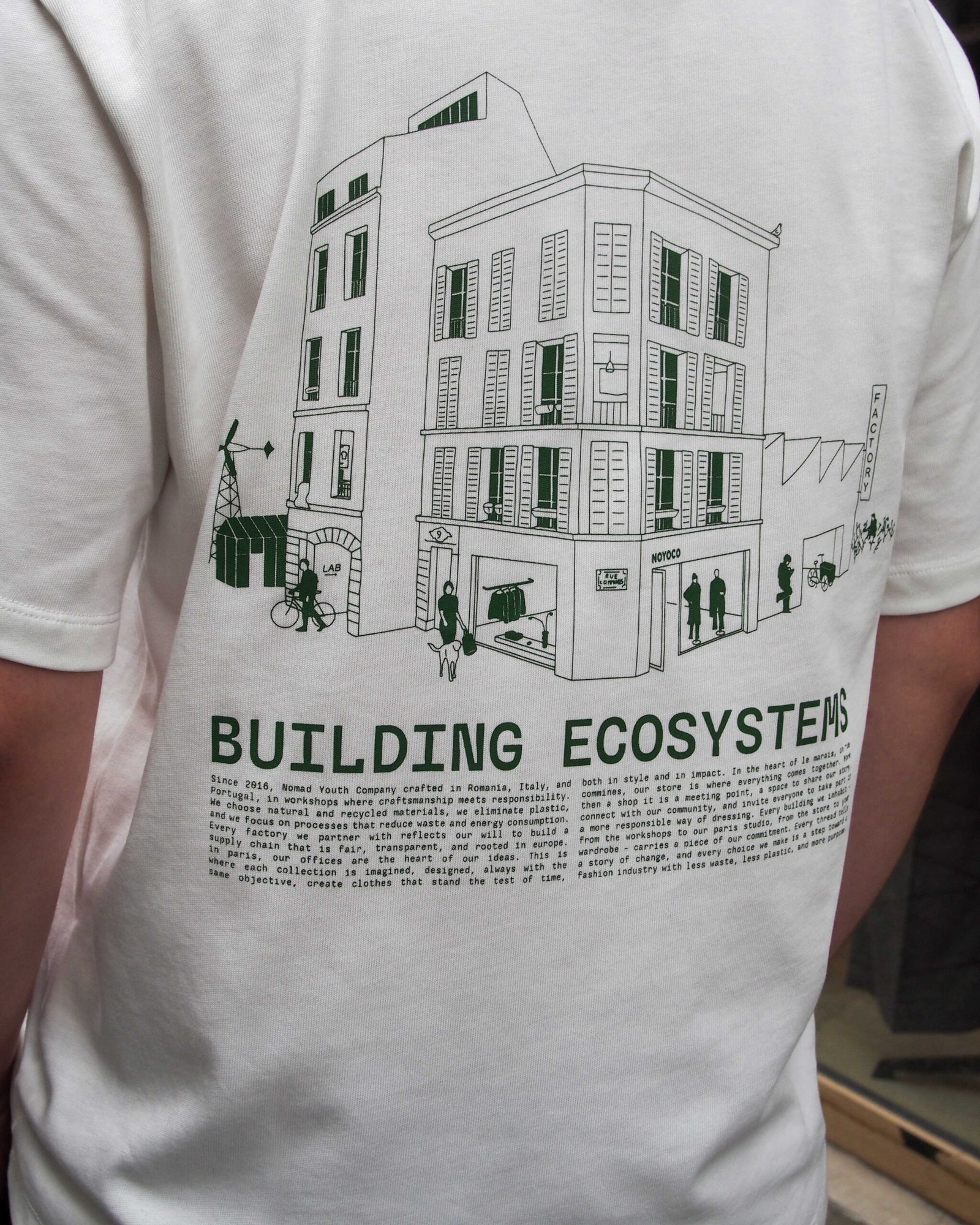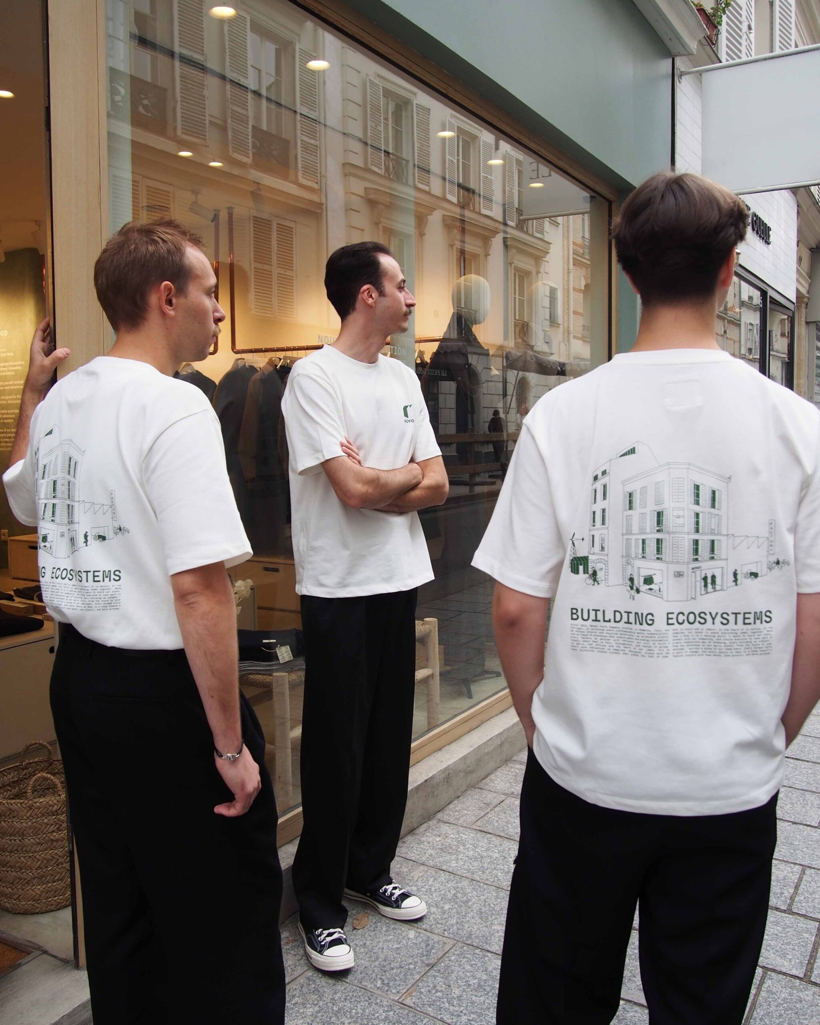 La T-shirt Gumi è stata disegnata in collaborazione con l’architetto di Bruxelles Renaud Baeckelandt. Essa getta uno sguardo unico sugli edifici che costituiscono la vita del nostro marchio. Dal 2016 produciamo le nostre collezioni in Francia, Romania, Italia e Portogallo. Ogni edificio che abitiamo – dai laboratori al nostro studio di Parigi, dalla boutique al vostro guardaroba – porta con sé una parte del nostro impegno.