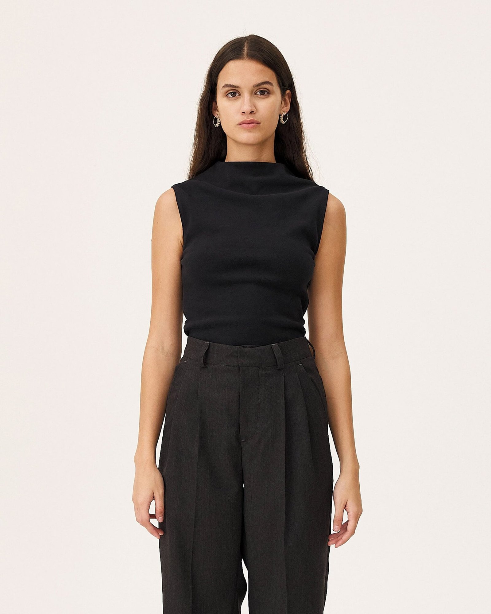 Il top Elba è un modello corto e aderente realizzato in jersey di cotone biologico. Il colletto rialzato e le spalle larghe gli conferiscono stile e personalità.