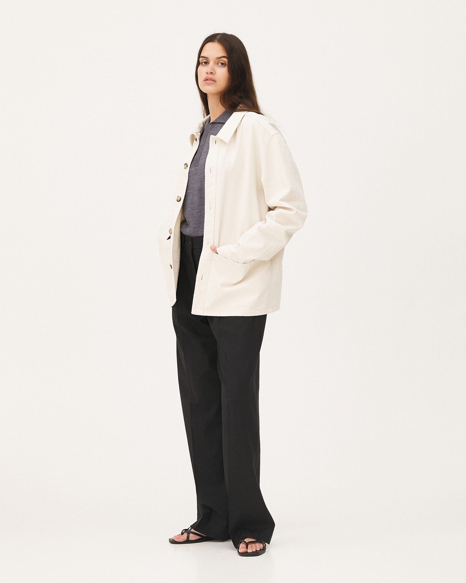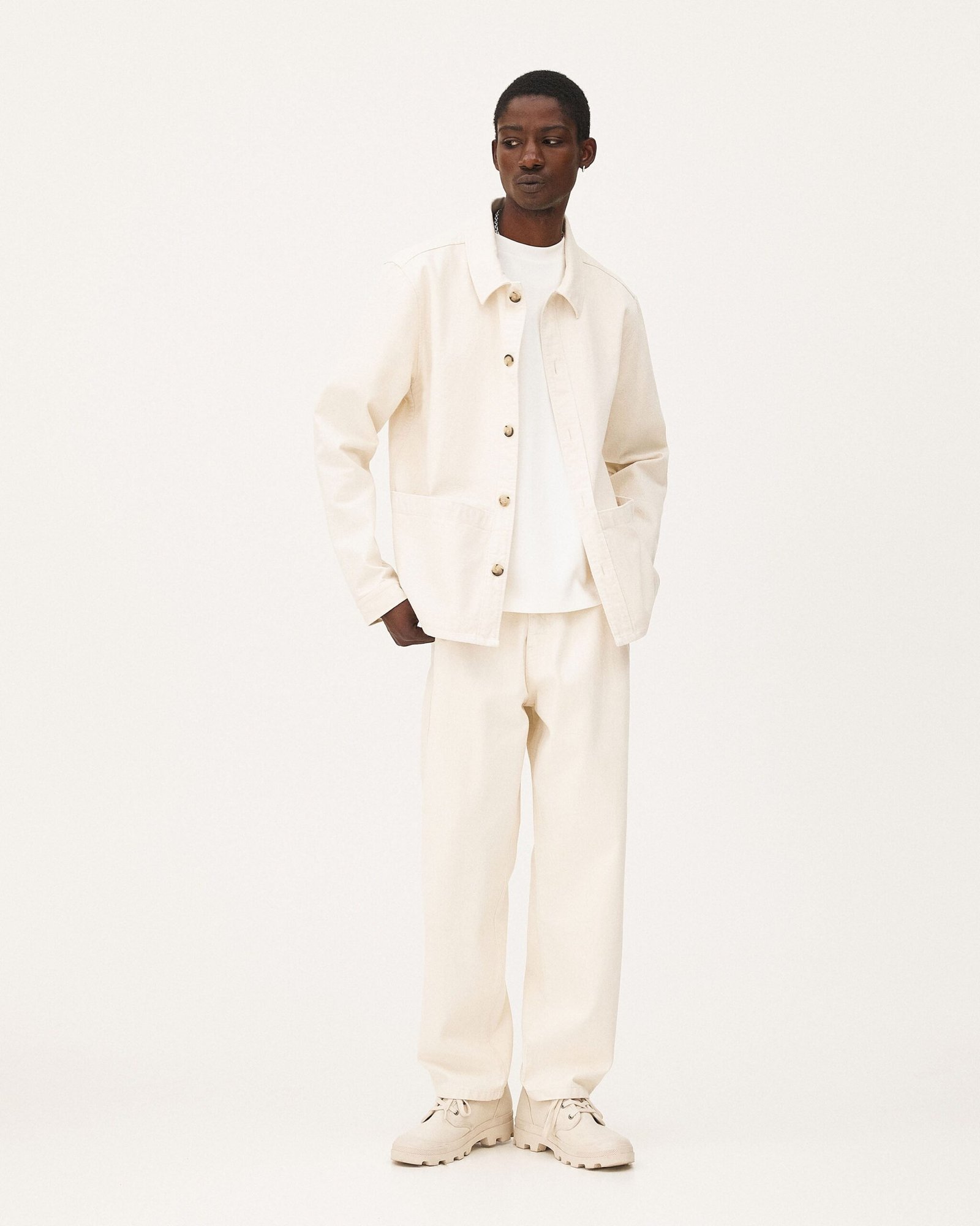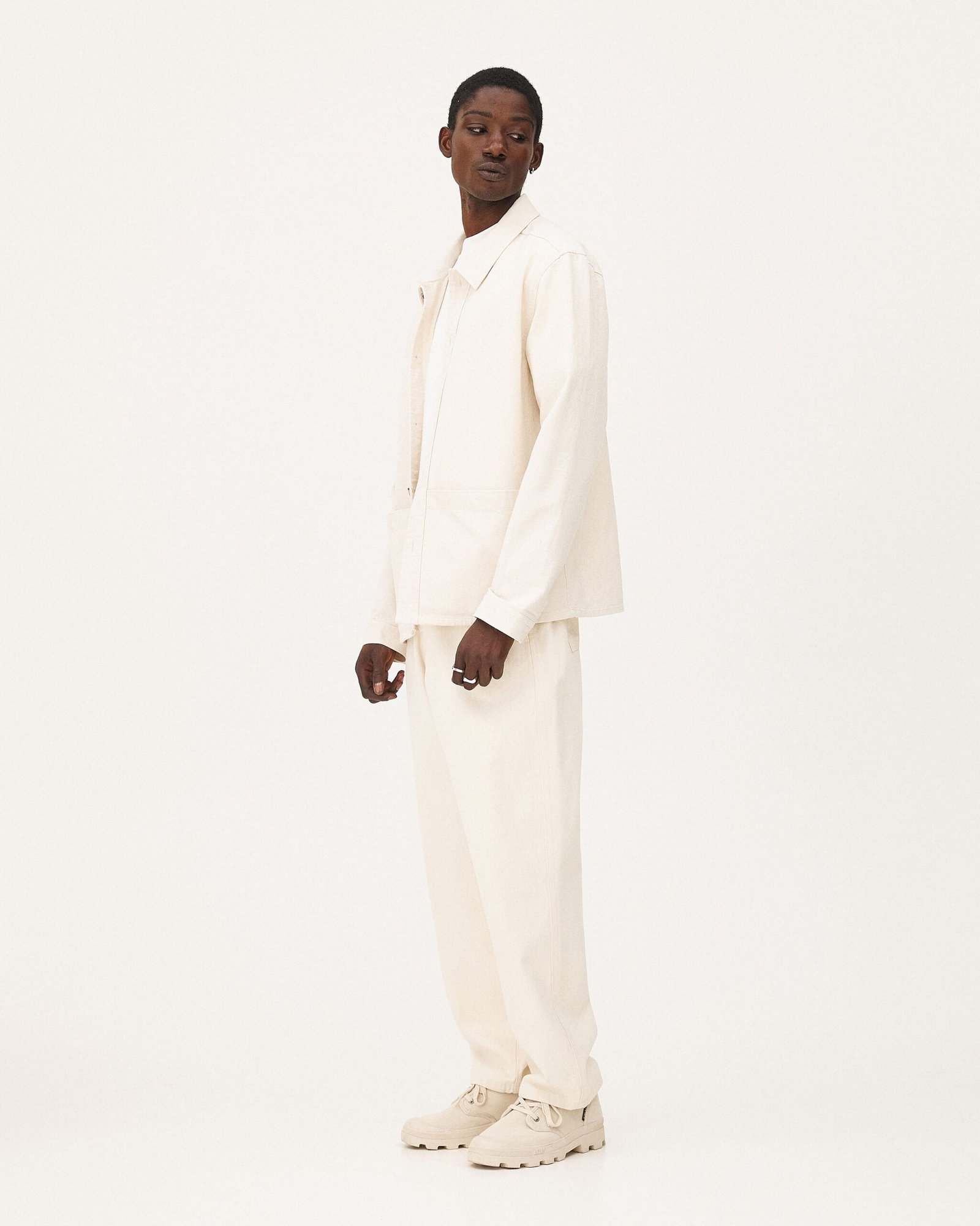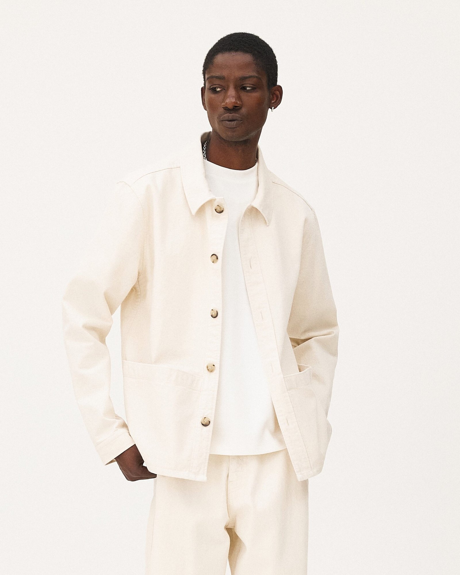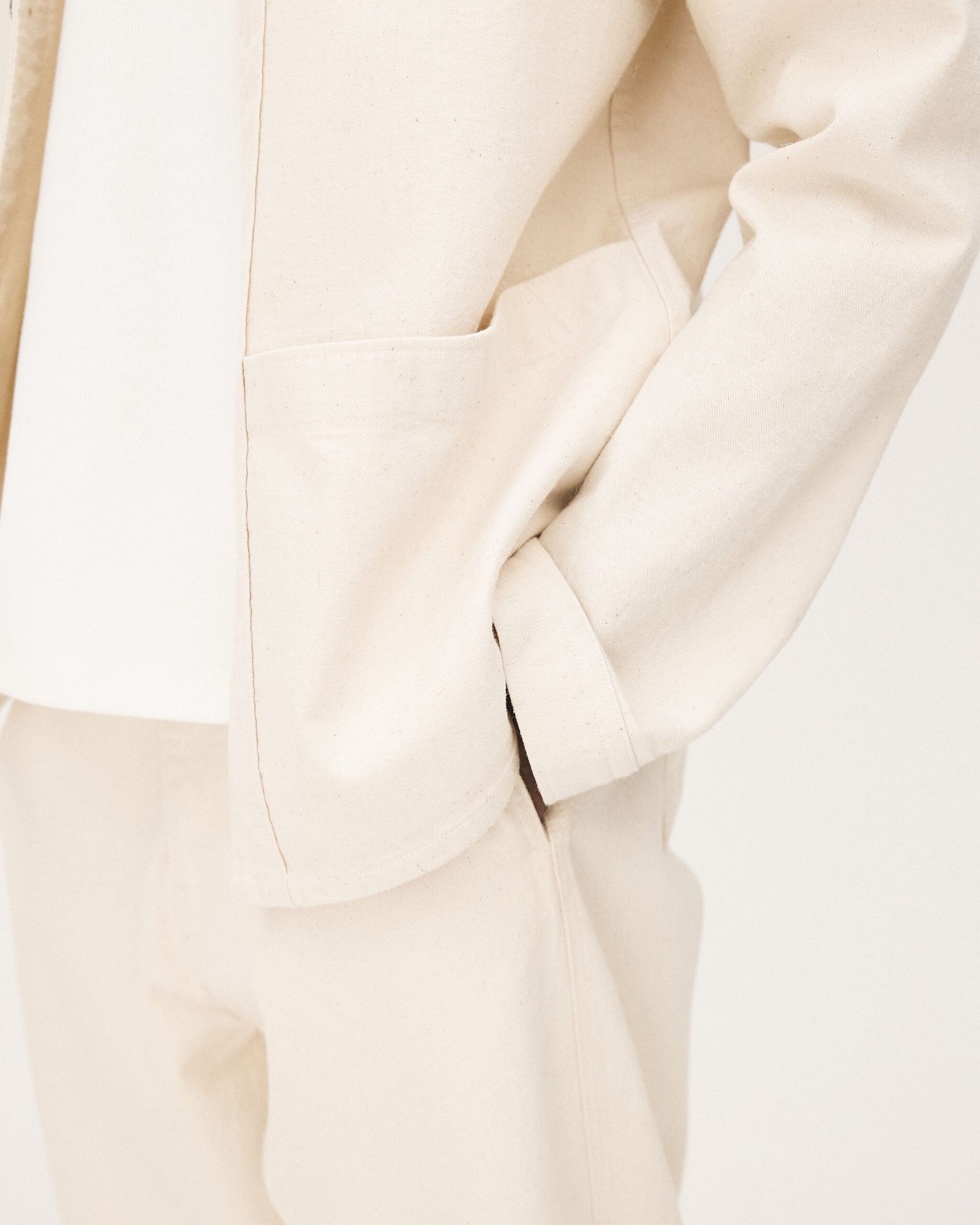 La maglia Kin incarna il perfetto equilibrio tra abbigliamento da lavoro ed estetica minimalista. Ispirata alle camicie dei pittori, rivisita un classico del guardaroba utilitario con un tocco contemporaneo. Realizzata in twill di cotone organico e fibra di ananas, offre comfort, durata e rispetto per l’ambiente. Le due grandi tasche laterali sono estremamente pratiche, ideali per l’uso quotidiano.