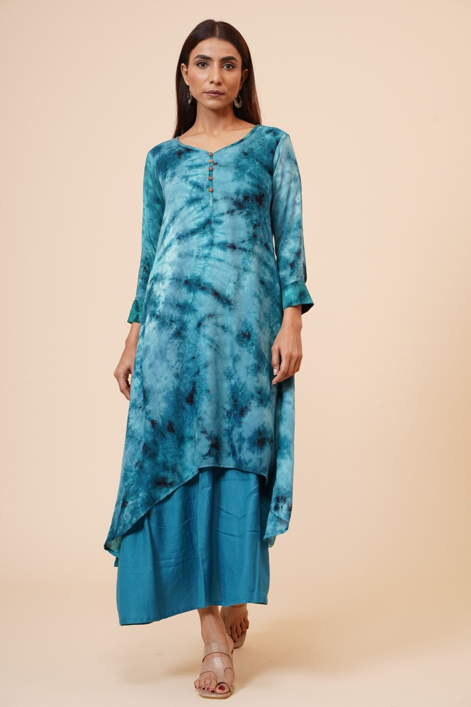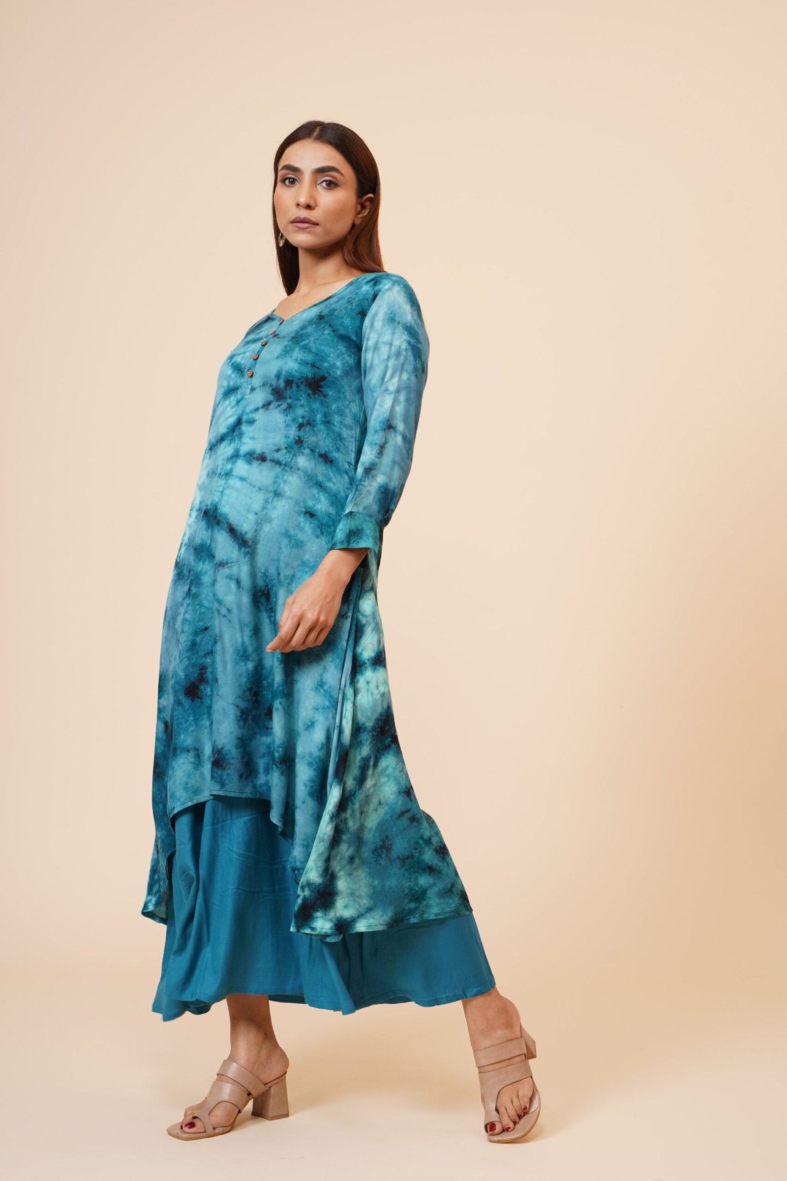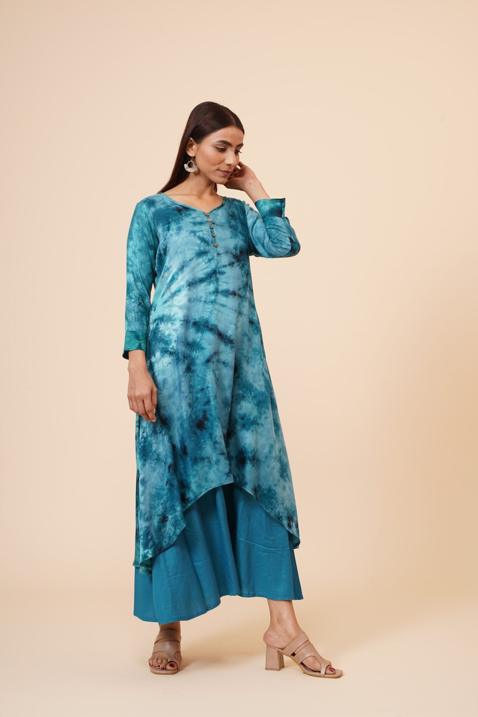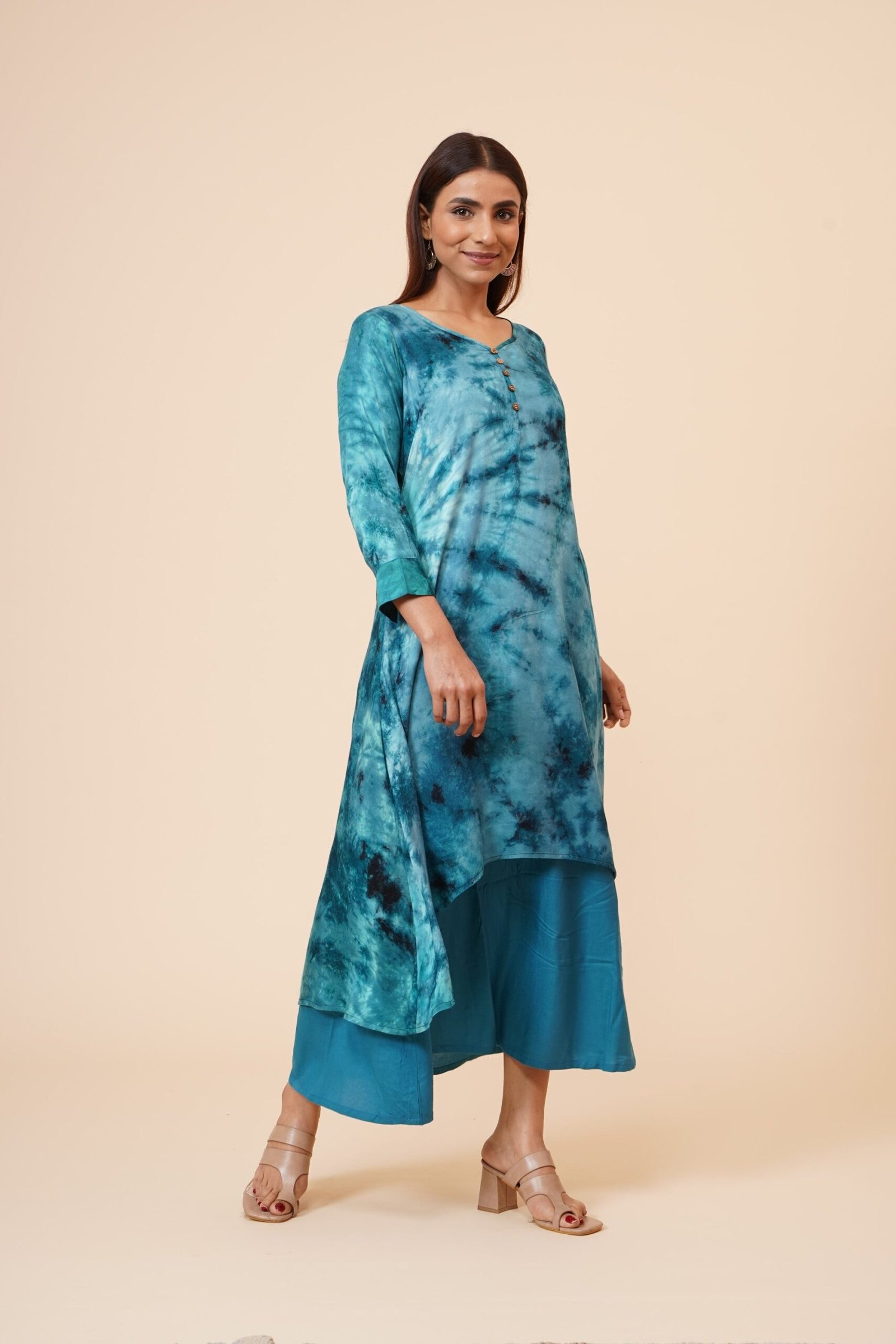 *Modello: Kurti con abbottonatura in legno sul davanti e polsini *Colore: Tie n Dye Blue