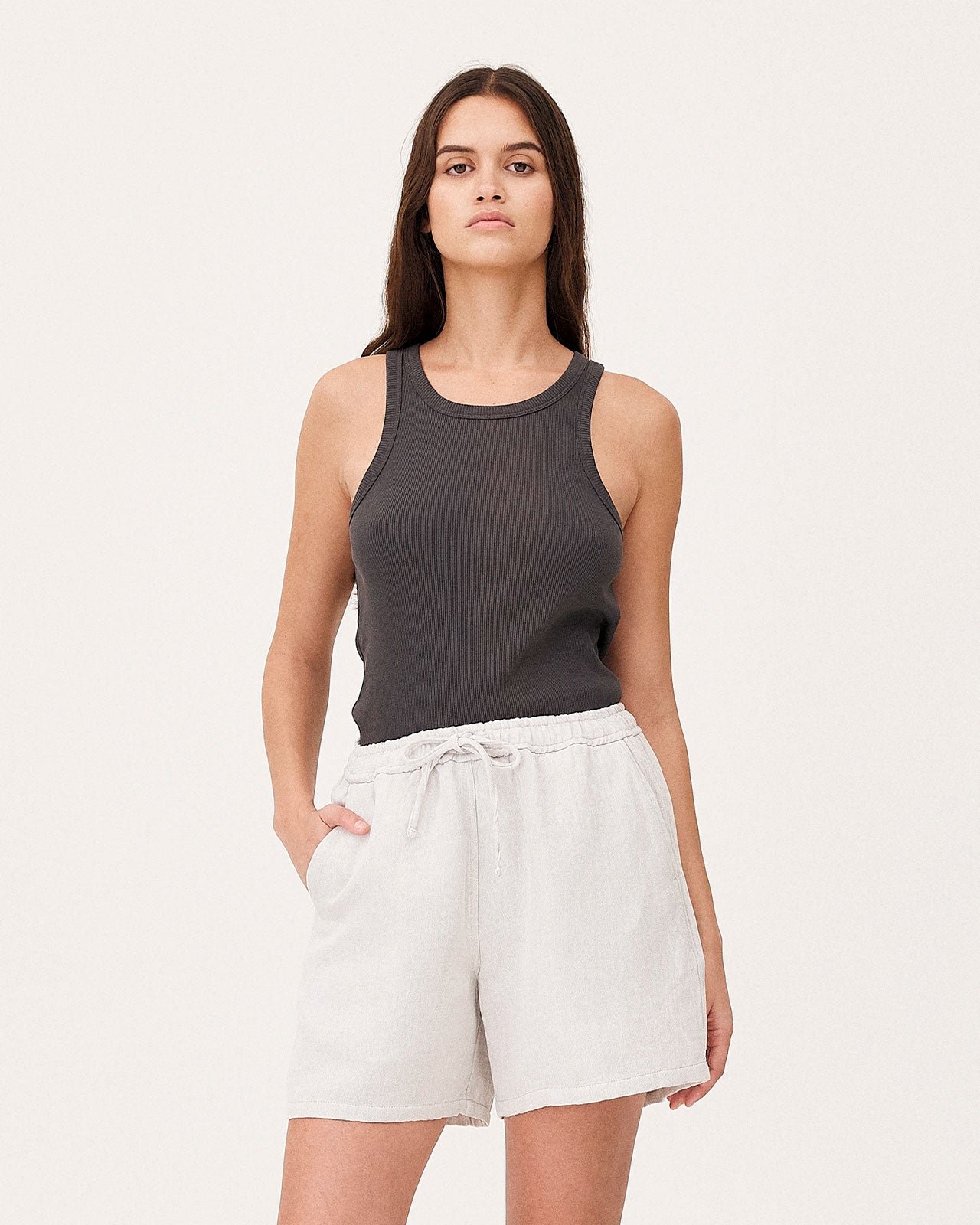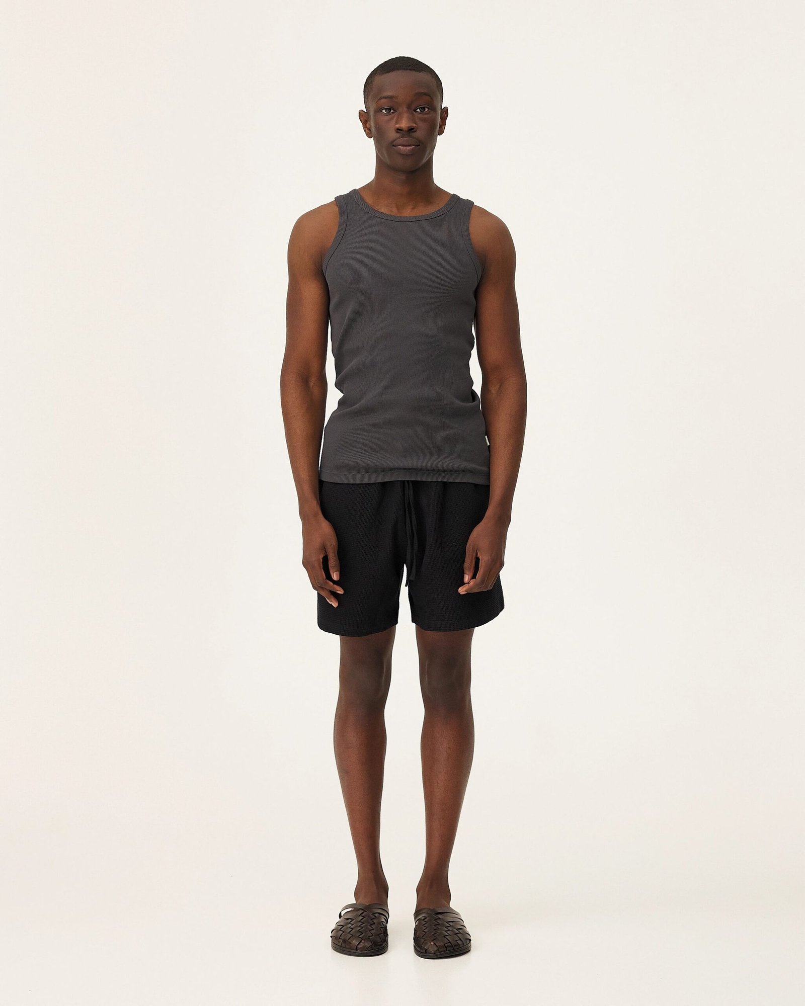 La canotta Leo è realizzata in cotone biologico. Ha un taglio aderente e una maglia e un bordo a coste.