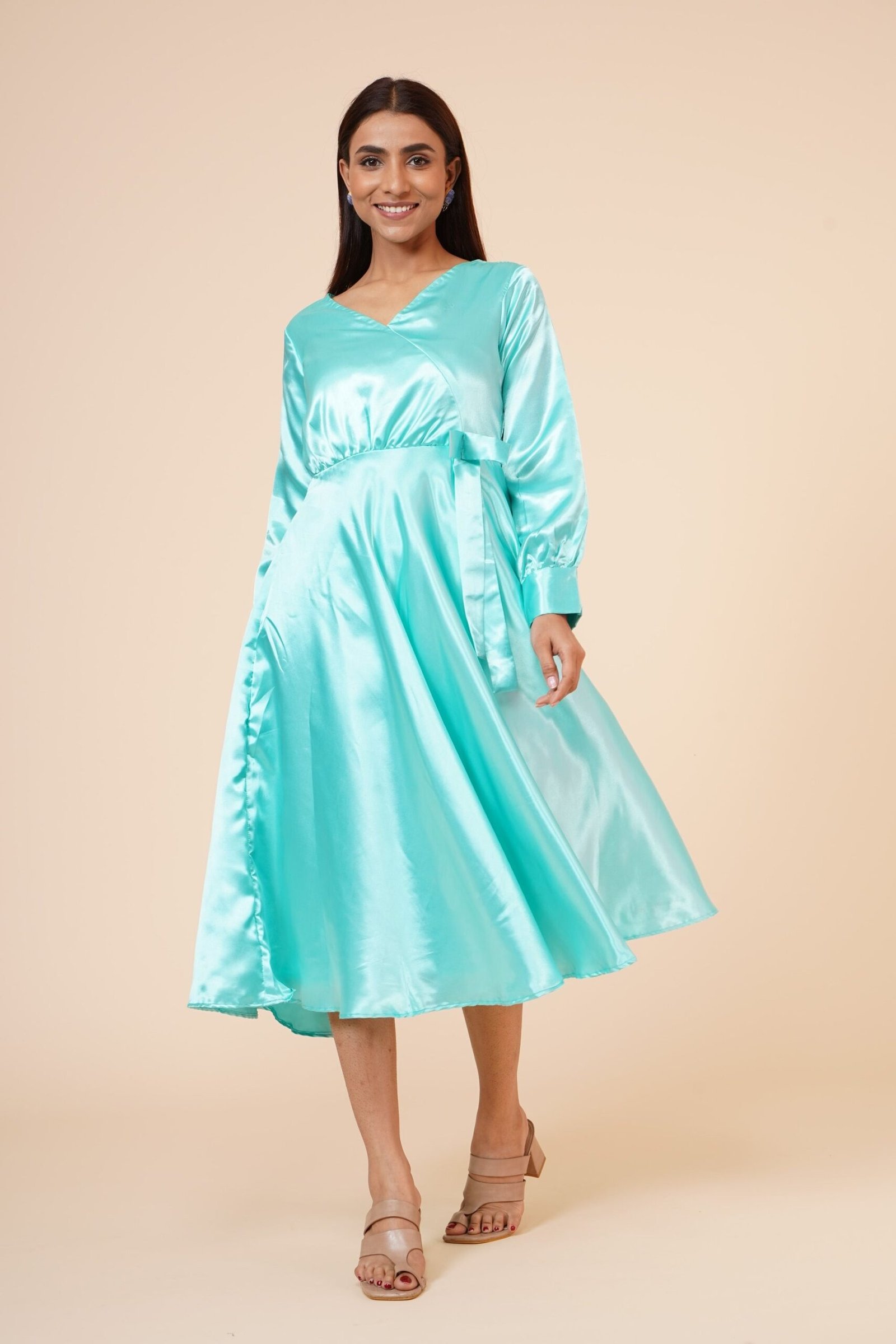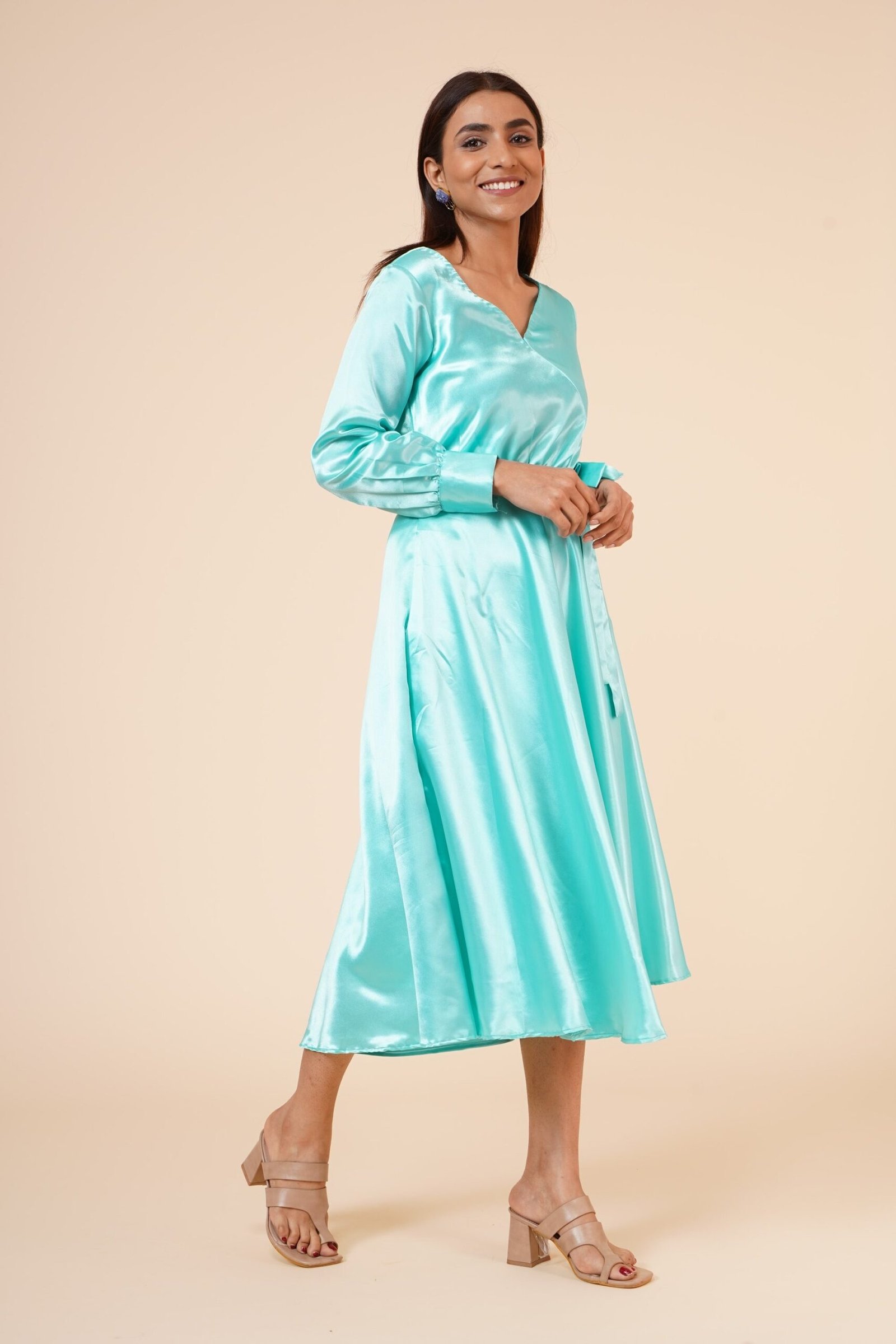 Linea donna impero con polsino in raso Abito a portafoglio blu cielo