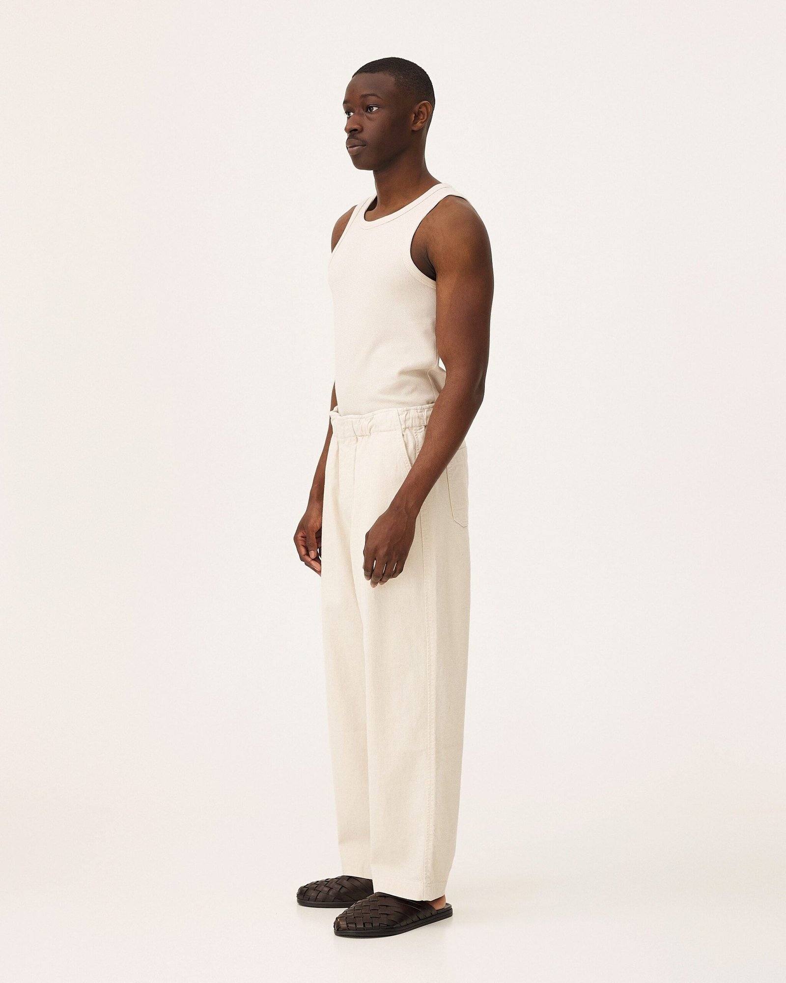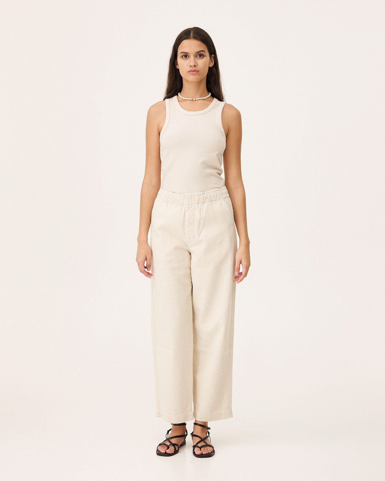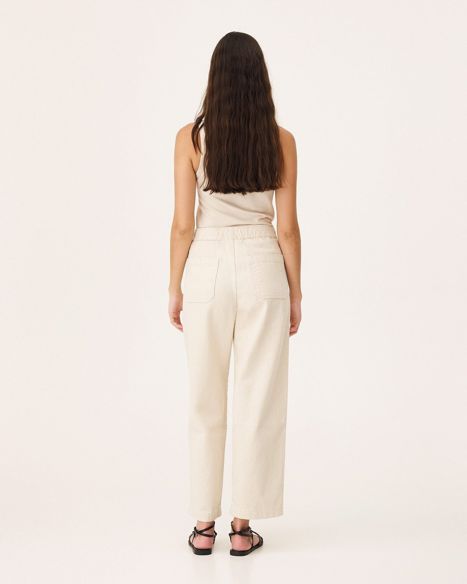 I pantaloni Michigan sono jeans morbidi con elastico in vita. Sono realizzati con un tessuto denim composto da cotone organico, fibra di ananas e lyocell. La trama twill conferisce loro resistenza e flessibilità. Le gambe sono dritte e ampie, con tasche italiane sul davanti e tasche applicate sul retro.