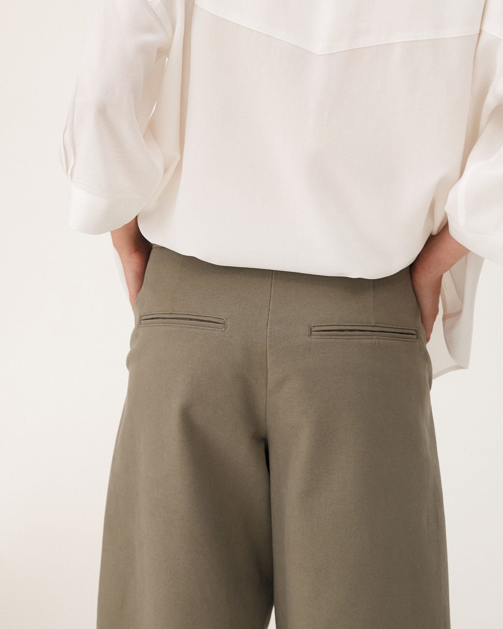 I pantaloni Nibe sono uno dei nuovi arrivi di questa stagione. Realizzati in un tessuto strutturato di cotone organico, presentano un taglio ampio e femminile. Il design curvo della gamba, che assottiglia la vita e adotta una forma a palloncino arrotondata, conferisce uno stile casual unico.