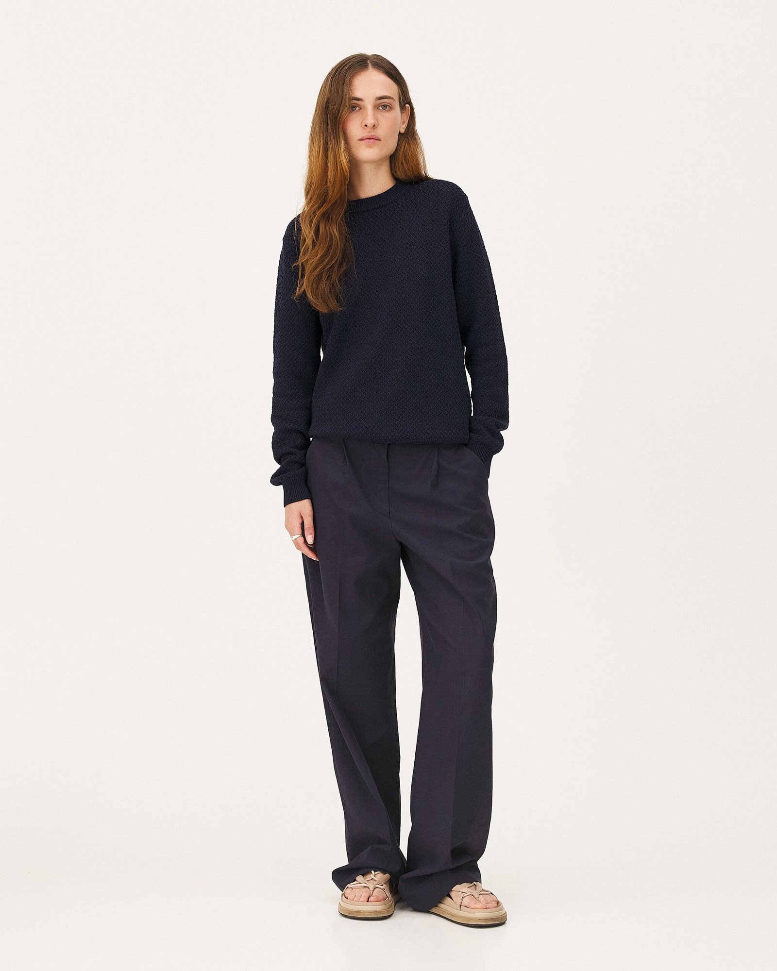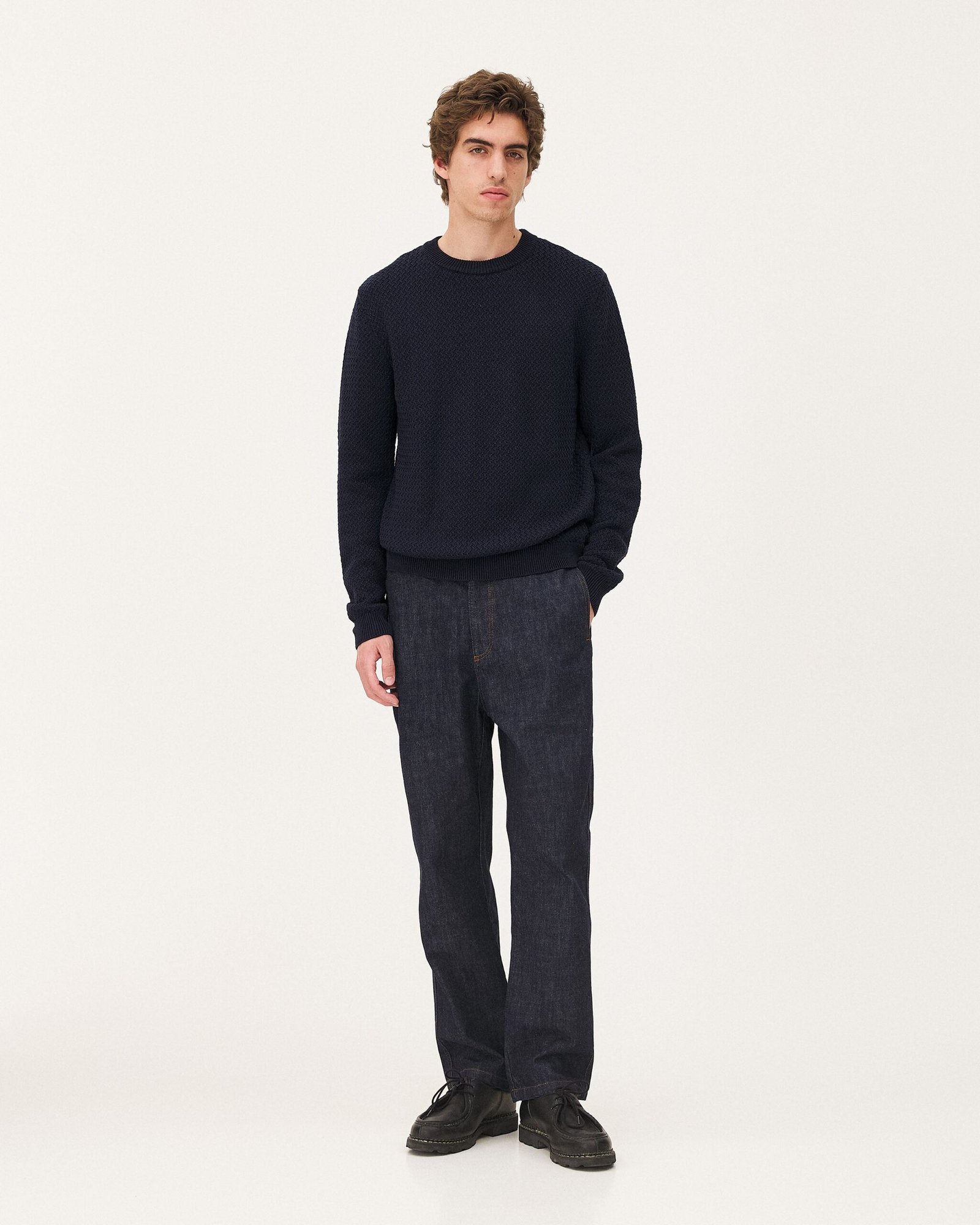 Il maglione Roma è realizzato in filato di cotone biologico. Il suo design semplice e la sua vestibilità slim si combinano perfettamente con un punto maglia geometrico per garantire eleganza e raffinatezza.